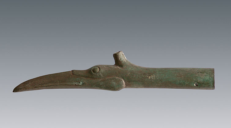 鹤头形青铜杖首  长15.5厘米  复制于鄂尔多斯市博物馆藏品