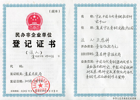 日前,经国家有关部门注册批复,宇达中国古代青铜技术研究中心正式注册成立。这是国内第一个由企业发起组织中国古代青铜技术研究机构,对于弘扬中国古代青铜文明影响深远。